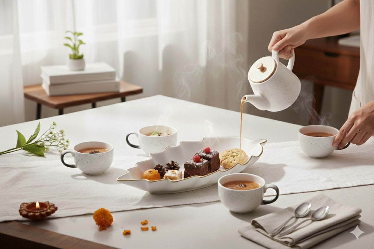 Introducing the Prime Gadgets 5-Piece Ceramic Tea & Coffee Set, designed for people who love clean, modern and premium table style.