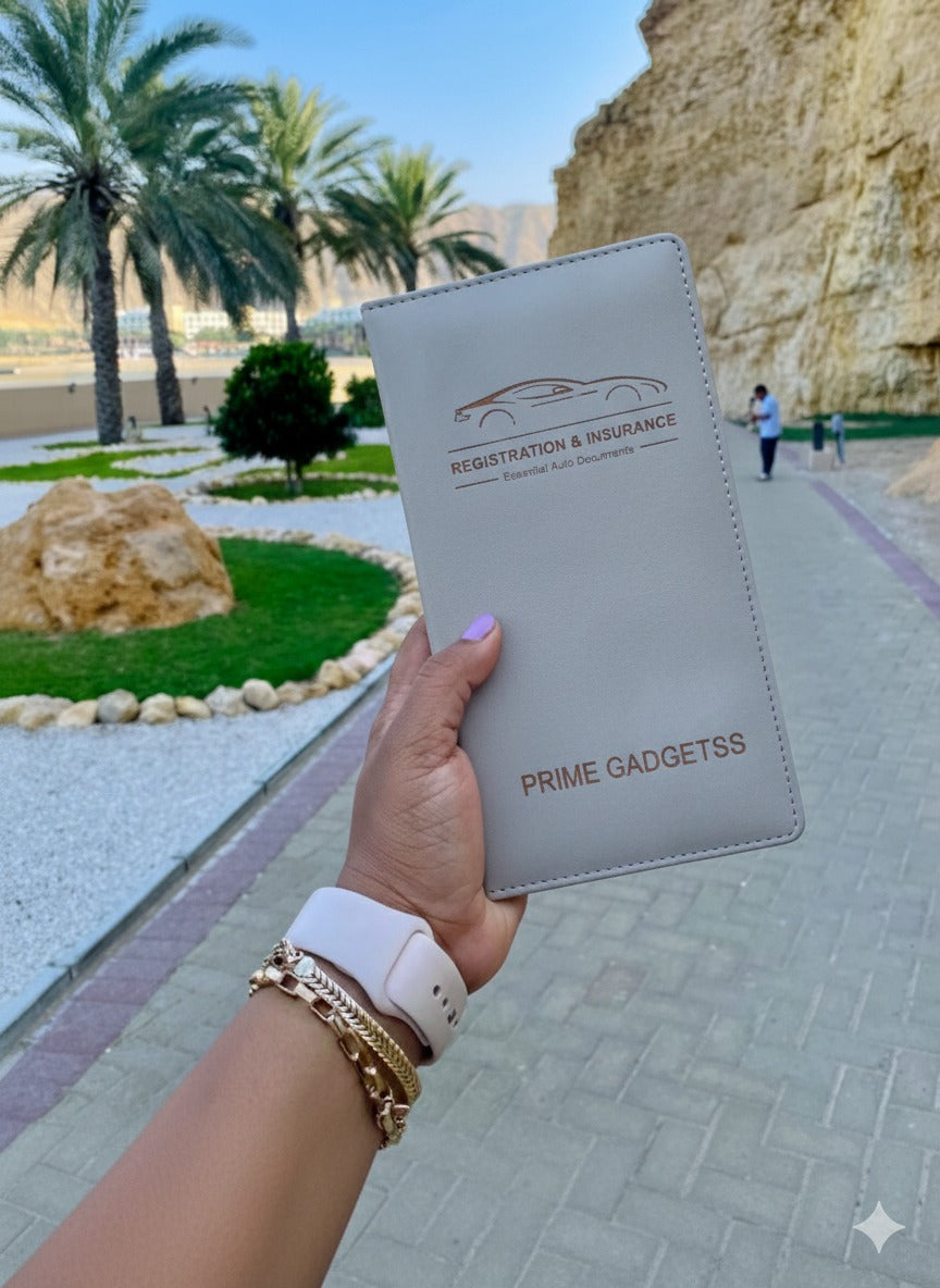 Prime Gadgetss Grey PU Leather Car Document Holder – Registration & Insurance Wallet (Tri-Fold, Slim Design)